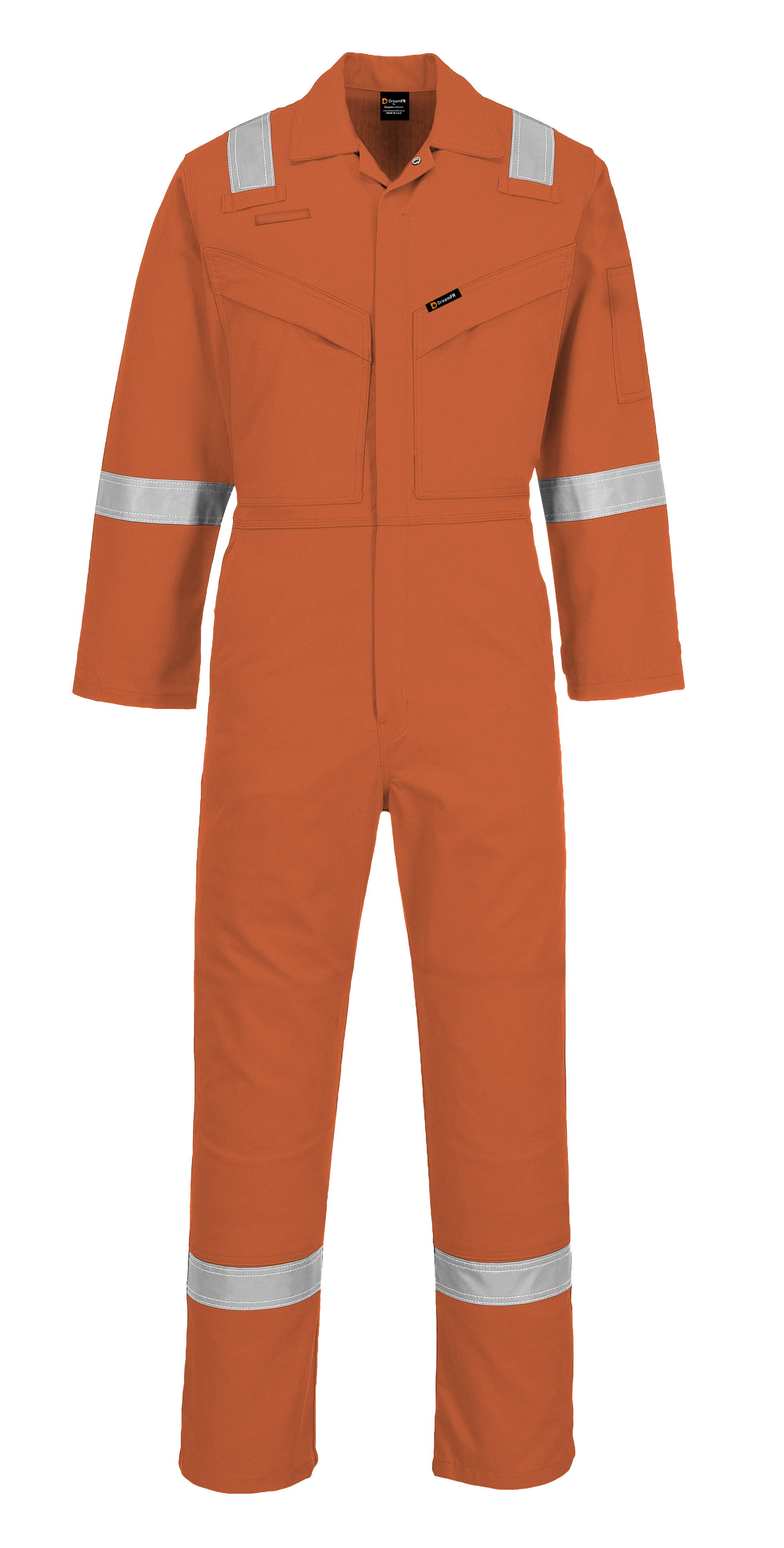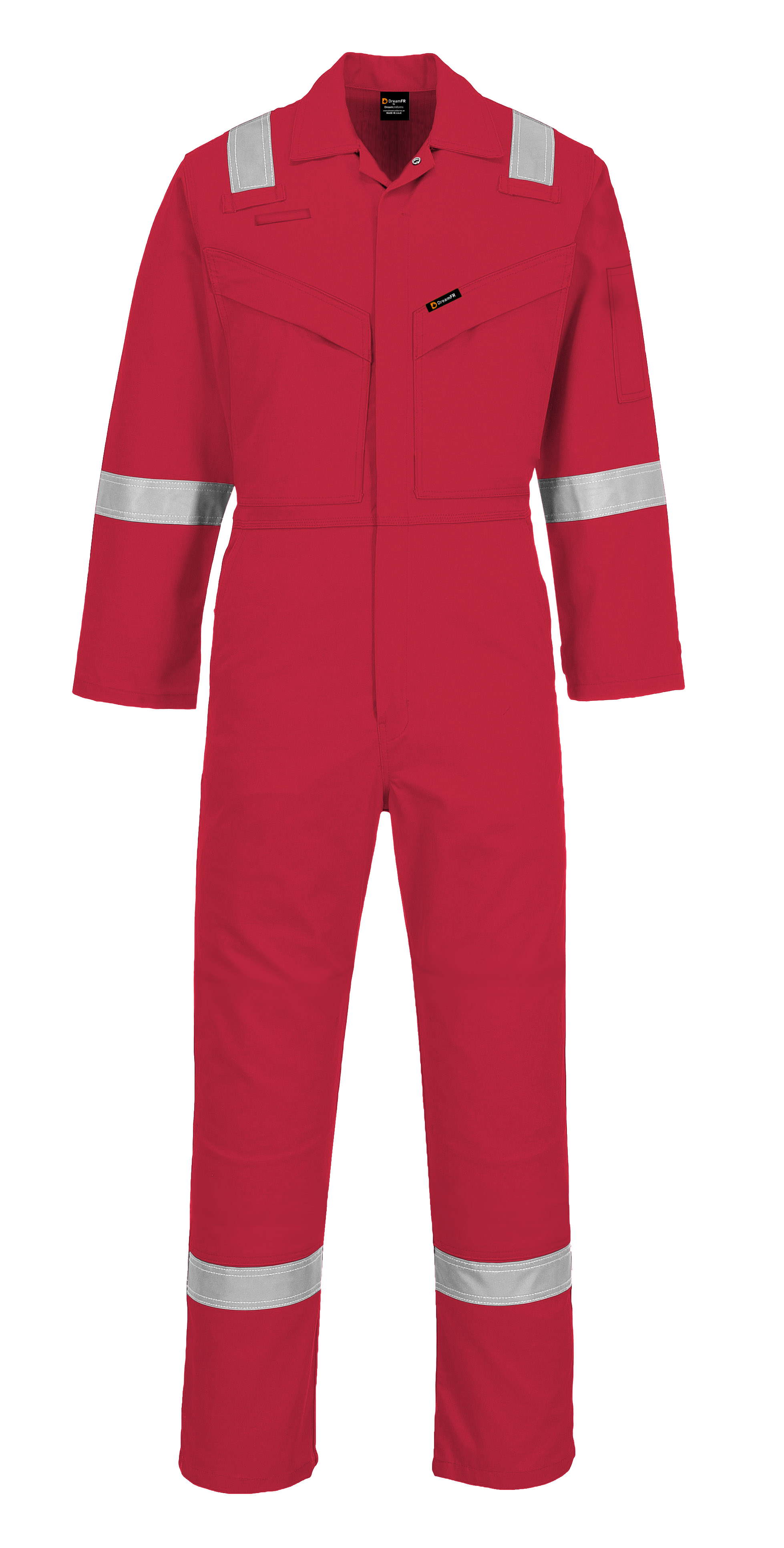 • An FR coverall with 2 chest and 2 back pockets, 1 sleeve pen pocket and 1 leg pocket.